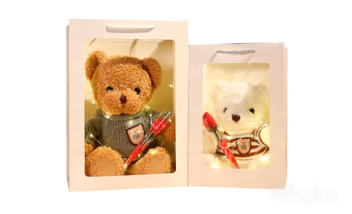 подарочный пакет, плюшевый мишка, цветок розы, гирлянда (элементы питания в конмплект не входят)